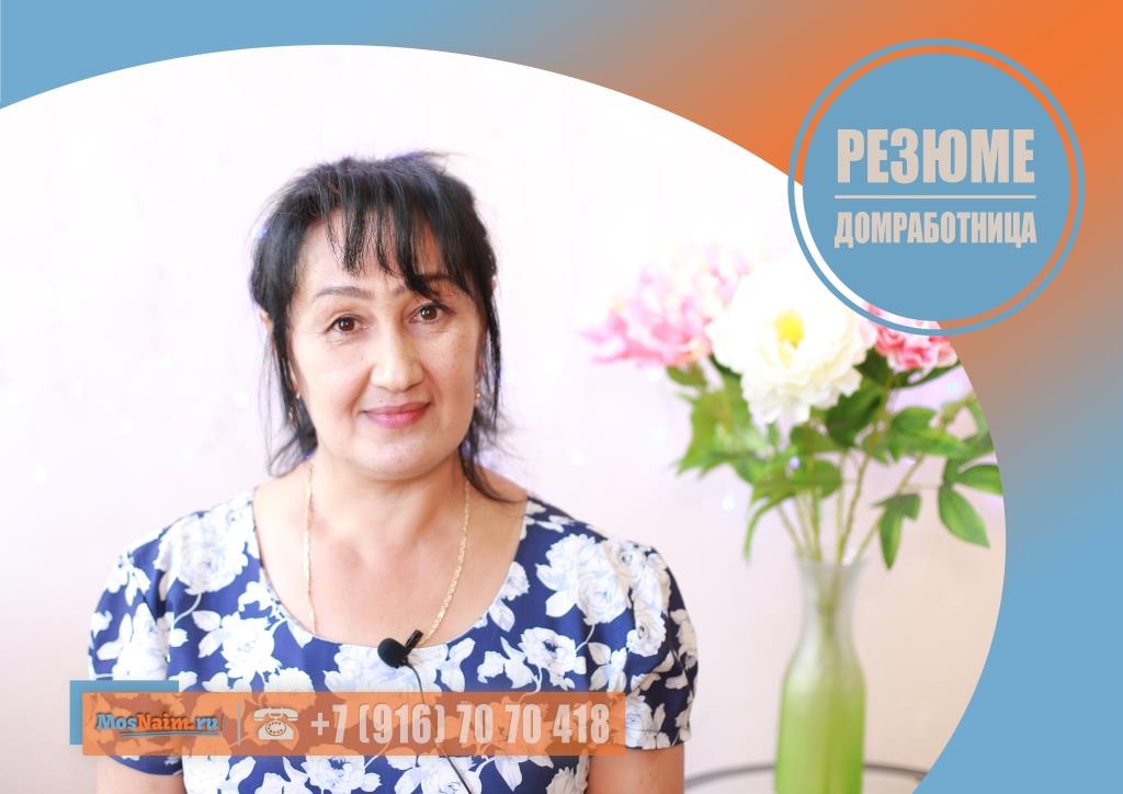 Имеет опыт работы: домработница (квартира 150 кв. м.) – 1 год. Готова предоставить рекомендацию.
