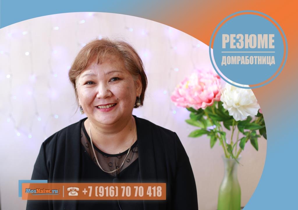 Имеет опыт работы: домработница (квартира 60 кв. м.) – 10 месяцев.