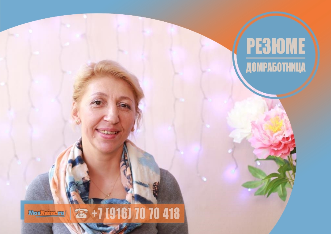 Имеет опыт работы: домработница (квартира 70 кв. м) — с 01.2018 года по настоящее время (частичная занятость); домработница (квартира 80 кв. м) – с 05.2018 года по настоящее время (частичная занятость); уборщица в стоматологической клинике (помещение 200 кв. м.) – с 05.2018 года по настоящее время (частичная занятость).