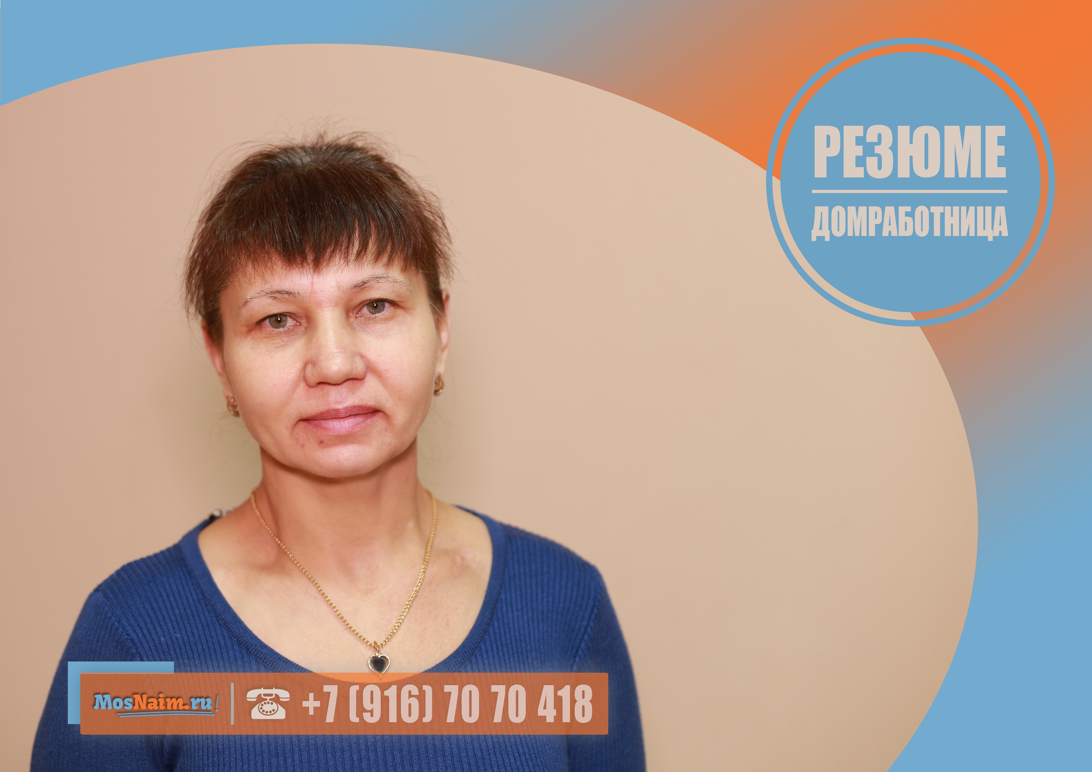Имеет опыт работы: домработница (таунхаус 320 кв. м.) – 5 лет; домработница (квартира 140 кв. м.) — с 2015 года по настоящее время; домработница (дом 450 кв. м.) — с 2016 года по настоящее время. Готова предоставить рекомендации.