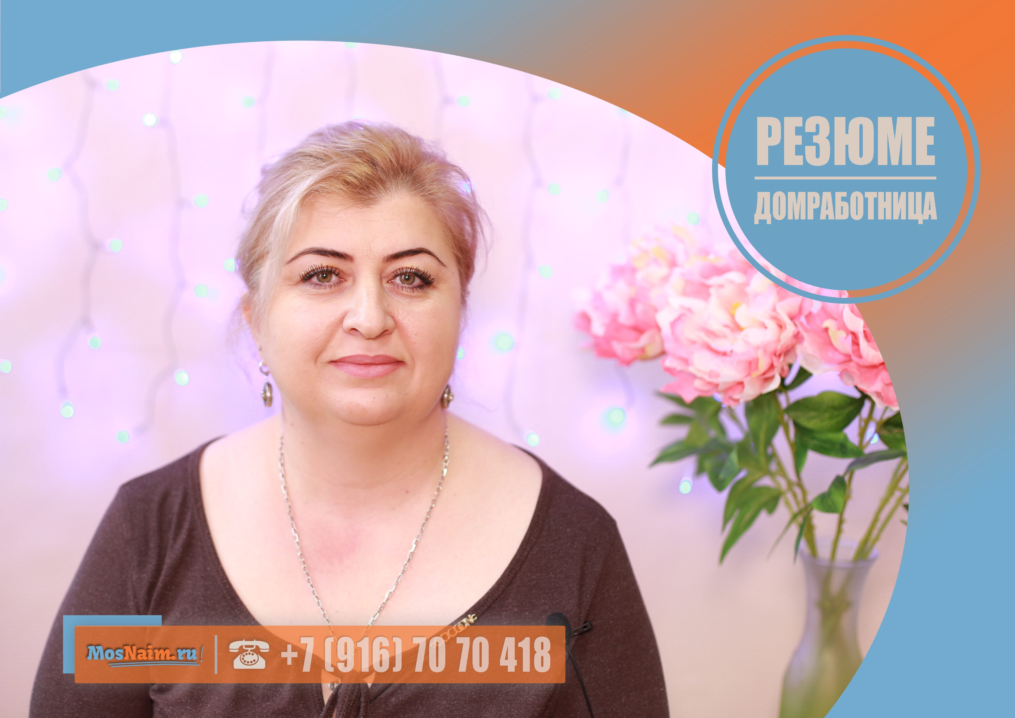 Имеет опыт работы: шеф-повар в ресторане – 15 лет; домработница (дом 350 кв. м.) – 2 года.