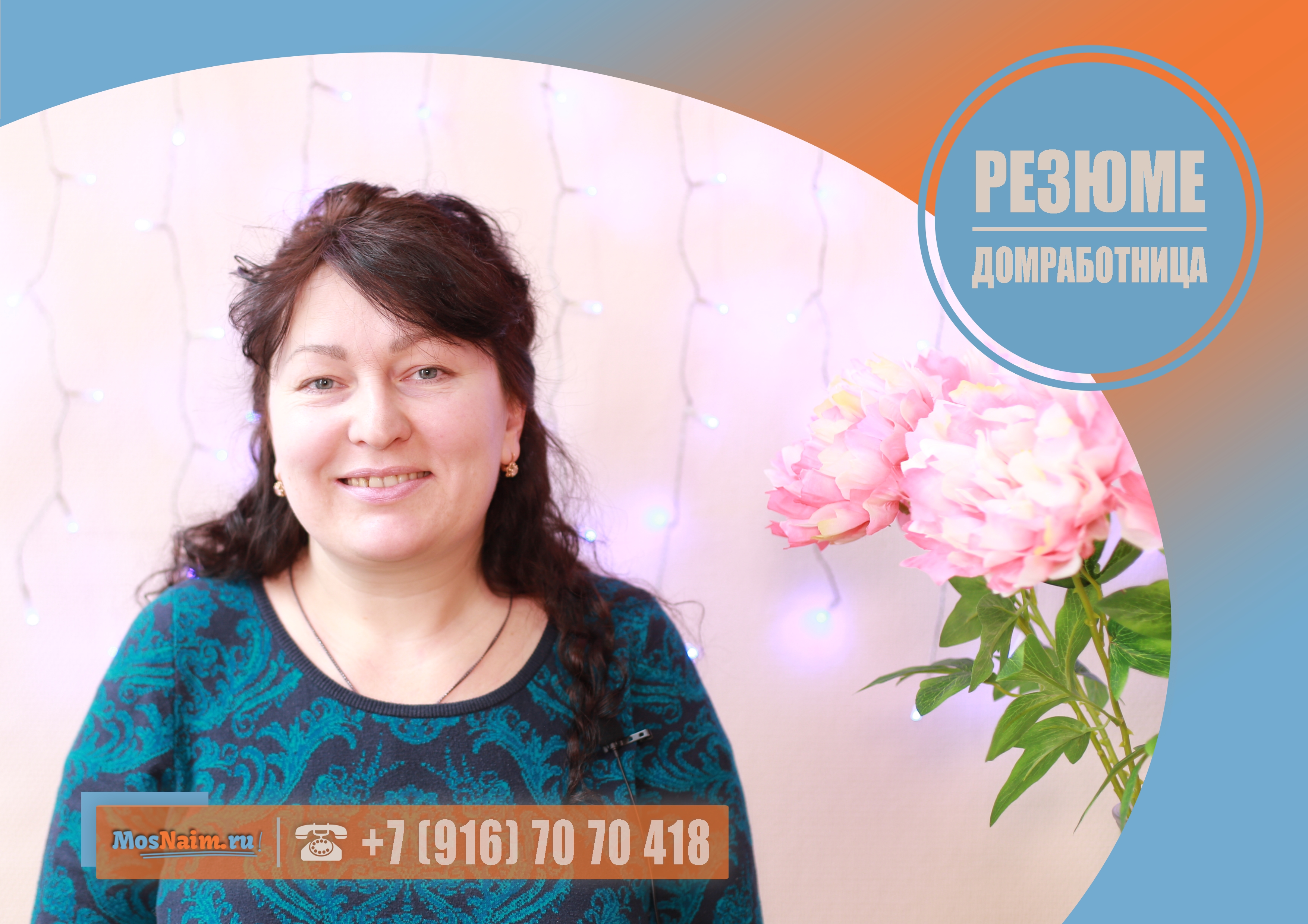 Готовность выполнять следующие обязанности, домработницы: Генеральная и поддерживающая уборка. Уход за стеклянными и зеркальными поверхностями. Мытьё окон, подоконников и откосов. Уход за санузлами, ванными комнатами и душевыми кабинами. Уход за гардеробом (стирка, глажка). Стирка, глажка и смена постельного белья. Стирка и глажка гардин, штор, портьер. Уход за комнатными растениями. Уход за домашними питомцами. Приготовление домашней пищи. Приготовление выпечки. Консервирование. Приготовление блюд по рецепту. Мытьё посуды. Вынос мусора. Закупка продуктов.