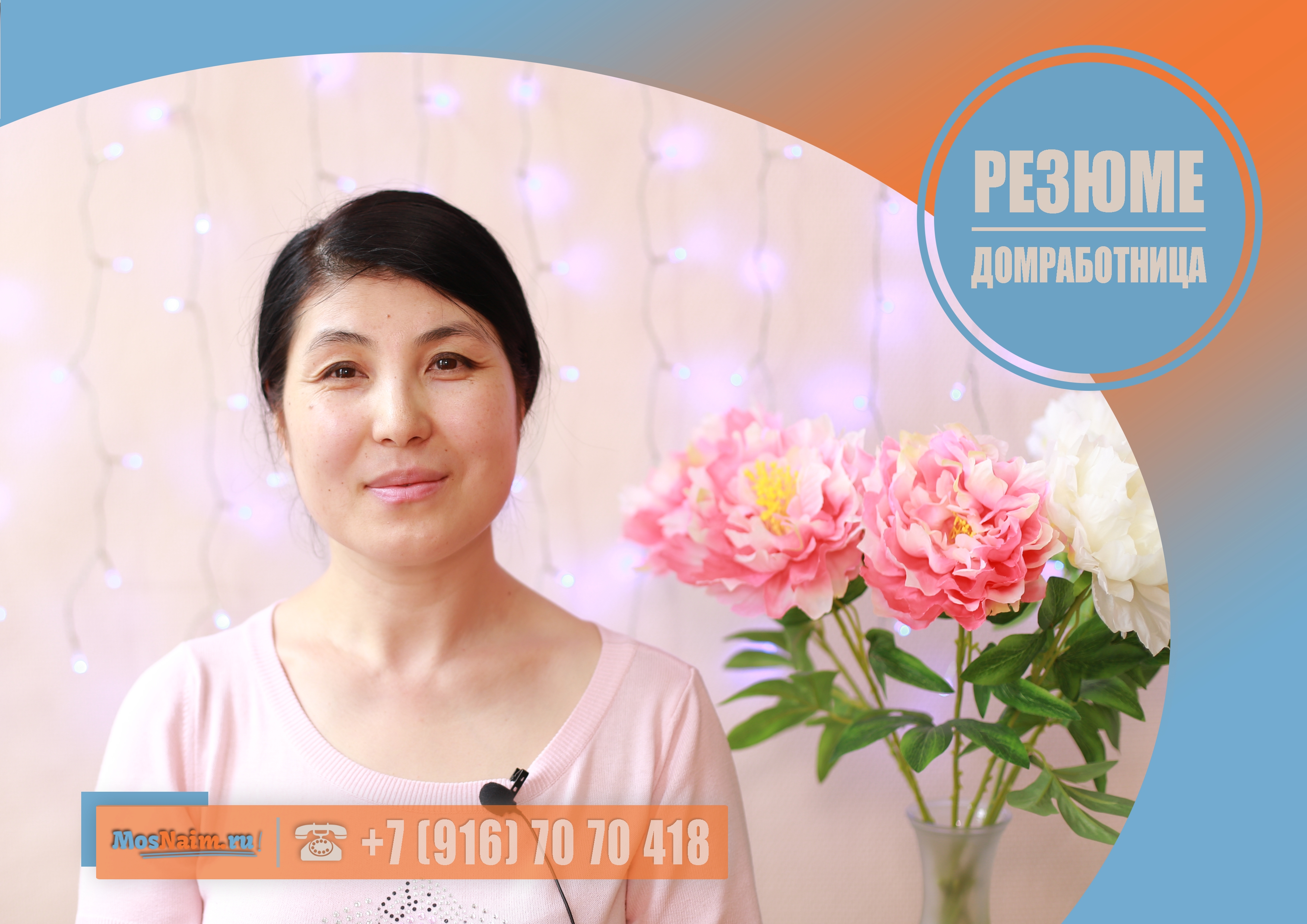 О кандидате: 43 года, замужем, мама троих детей, знак зодиака — рыбы, национальность — киргизка, вероисповедание — ислам, без вредных привычек, получила среднее специальное медицинское образование по специальности «Медицинская сестра» (со слов соискателя), прошла курсы домработниц по теме «Психологическая адаптация работника в семье», посещала профессиональный индивидуальный мастер-класс по теме: «Уход за VIP-гардеробом парогенератором», готова работать под камерами видеонаблюдения, согласна пройти проверку на полиграфе, просроченных кредитов нет.