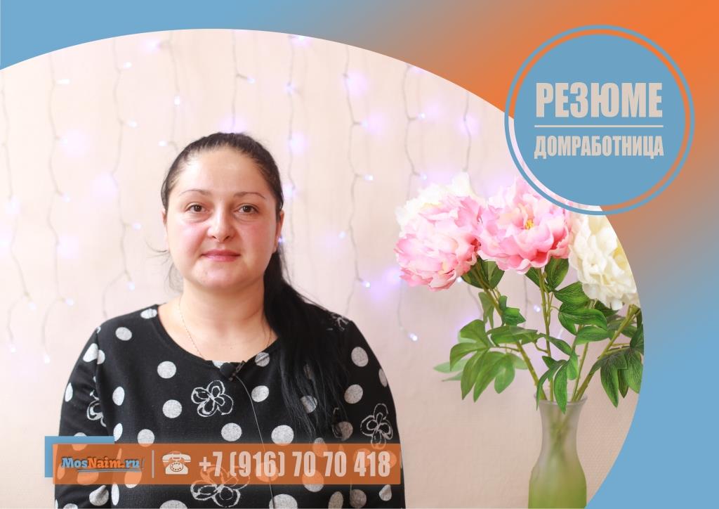 Имеет опыт работы: домработница (фирма «Чистый Дом») – 8 лет; домработница (квартира 120 кв. м.) – 2 года. Готова предоставить рекомендацию.