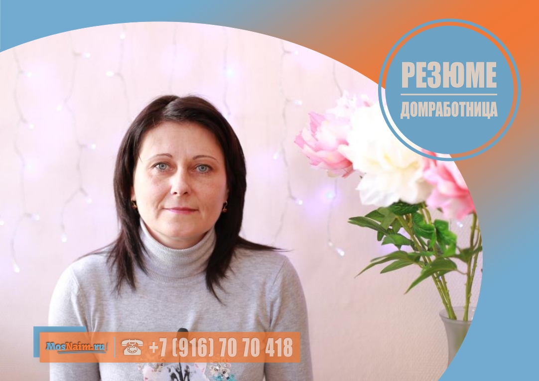 Имеет опыт работы: работала домработницей без проживания – 4 месяца. Готова предоставить рекомендацию.