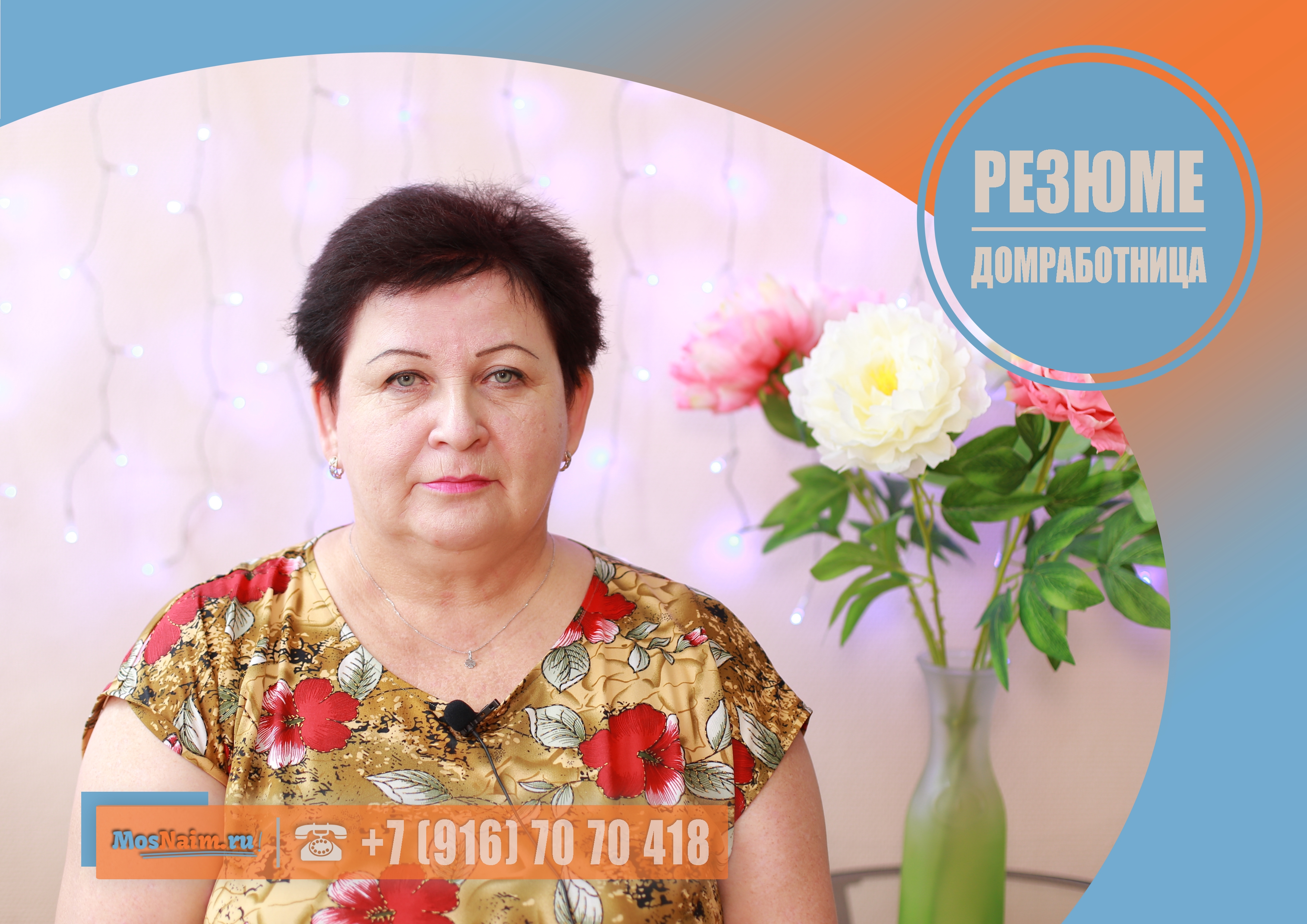 Готовность выполнять следующие обязанности, домработницы: Генеральная и поддерживающая уборка. Уход за стеклянными и зеркальными поверхностями. Мытьё окон, подоконников и откосов. Уход за санузлами, ванными комнатами и душевыми кабинами. Уход за гардеробом (стирка, глажка). Стирка, глажка и смена постельного белья. Стирка и глажка гардин, штор, портьер. Уход за комнатными растениями (полив, внешний уход). Уход за домашними питомцами. Приготовление домашней пищи. Приготовление выпечки. Консервирование. Приготовление блюд по рецепту. Мытьё посуды. Вынос мусора. Закупка продуктов.