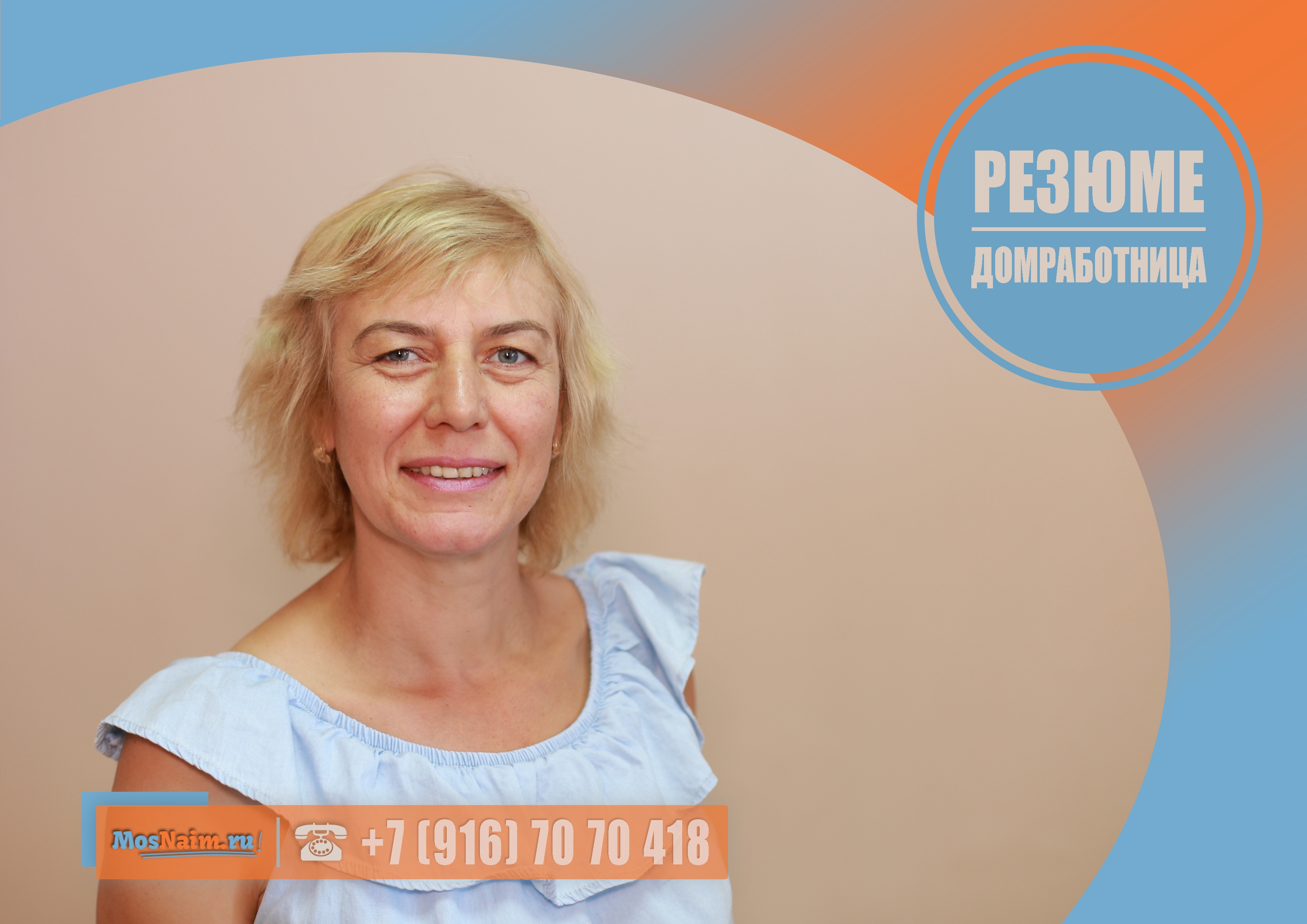 Имеет опыт работы: домработница с функциями няни (девочка 7 лет, дом 300 кв. м.) – 3 года 5 месяцев; домработница (дом 500 кв. м.) – 6 месяцев; няня с функциями домработницы (мальчик 4 года, дом 350 кв. м.) – 2 года 4 месяца. Готова предоставить рекомендации.
