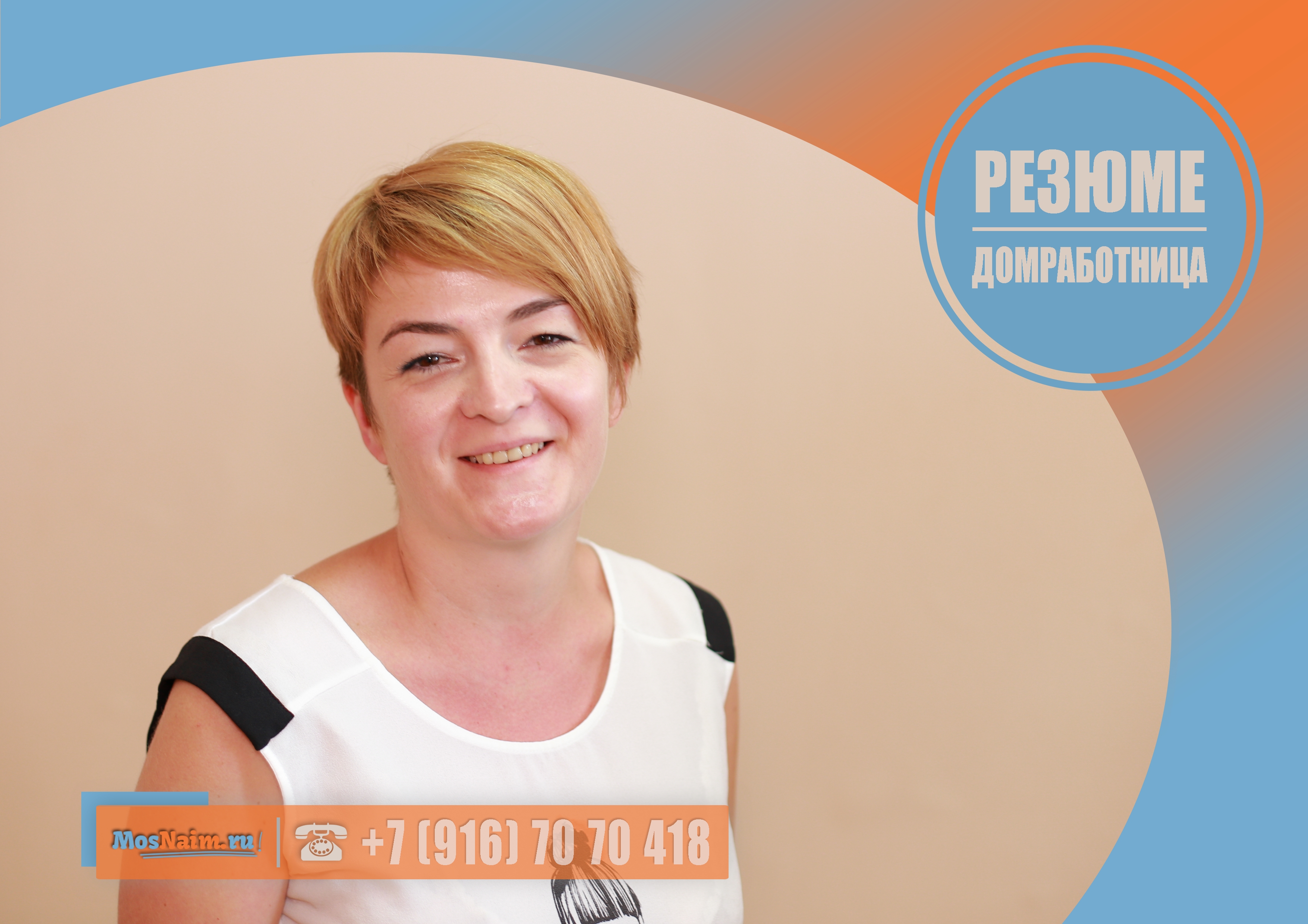 Имеет опыт работы: домработница с функциями няни (девочка 0+, дом 800 кв. м.) – 6 лет.