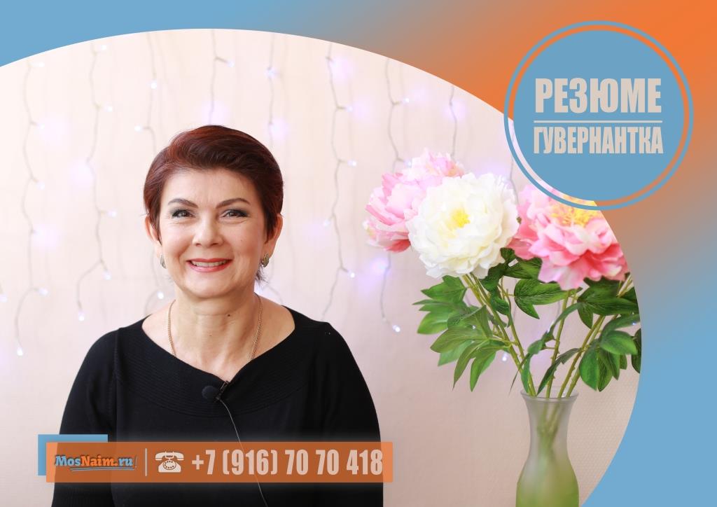 Имеет опыт работы: педагогический стаж (преподаватель начального технического моделирования на станции юных техников) – 5 лет; гувернантка (мальчик 6 лет) – 7 месяцев; няня – гувернантка (девочка 4 года) – 3 месяца; няня – гувернантка (мальчик 4 года 6 месяцев) – 3 года; гувернантка (мальчик 9 лет) – 3 месяца. Готова предоставить рекомендации.