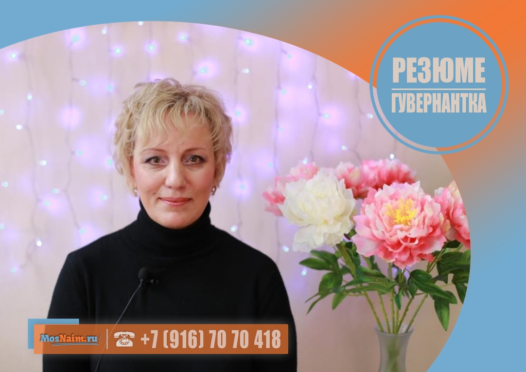 Имеет опыт работы: педагогический стаж (воспитатель) – 3 года; гувернантка (мальчик 10 лет) – 6 месяцев.