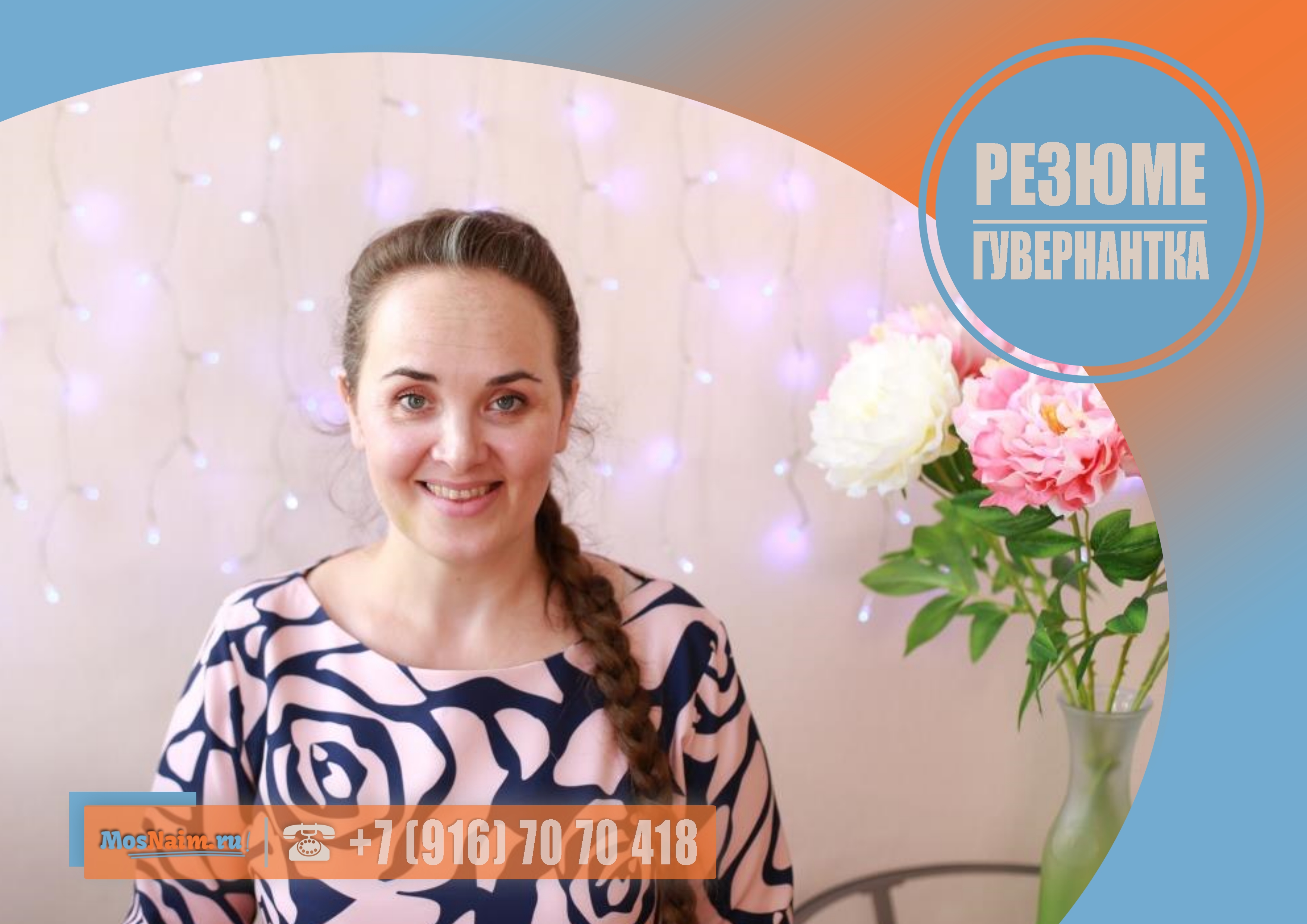 Личные и деловые качества: доброжелательная, в меру строгая, с чувством юмора, целеустремлённая, любящая детей, слушает пожелания работодателей по уходу и развитию детей.