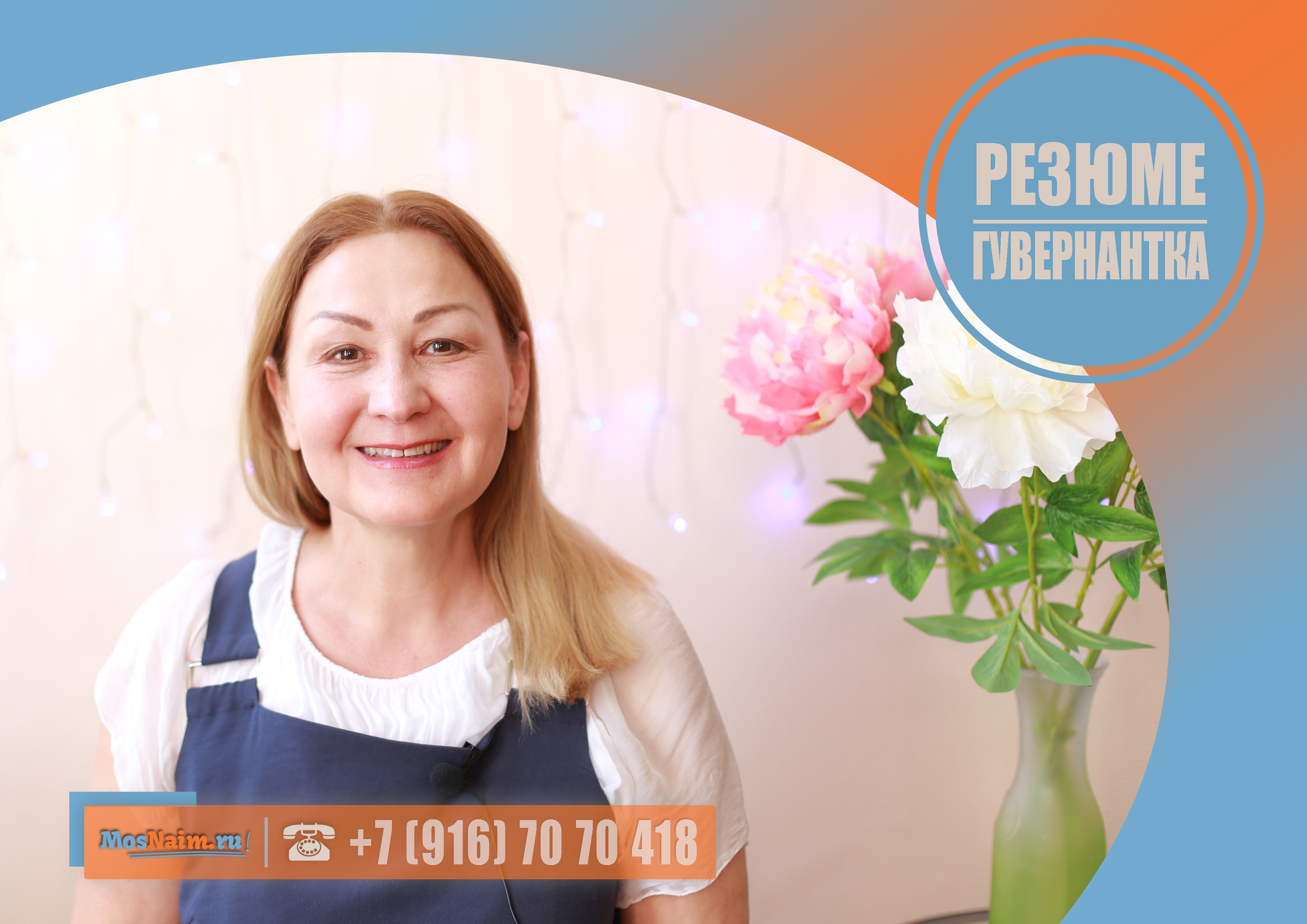 О кандидате: 52 года, без семейных проблем, мама одного совершеннолетнего ребёнка, знак зодиака — водолей, национальность — русская, вероисповедание — православие, без вредных привычек, в наличии биометрический загранпаспорт (действителен до 28.03.2027 г.), получила среднее специальное образование по специальности «Дошкольное воспитание», прошла обучение в международном колледже UK IEB (Spoken English for Speakers of Other Languages), Level of English proficiency (Advanced), в наличии справка об отсутствии судимости (действительна до 10.08.2019 г.), в наличии медицинская книжка (анализы от 23.08.2018 г.), готова работать под камерами видеонаблюдения, просроченных кредитов нет.