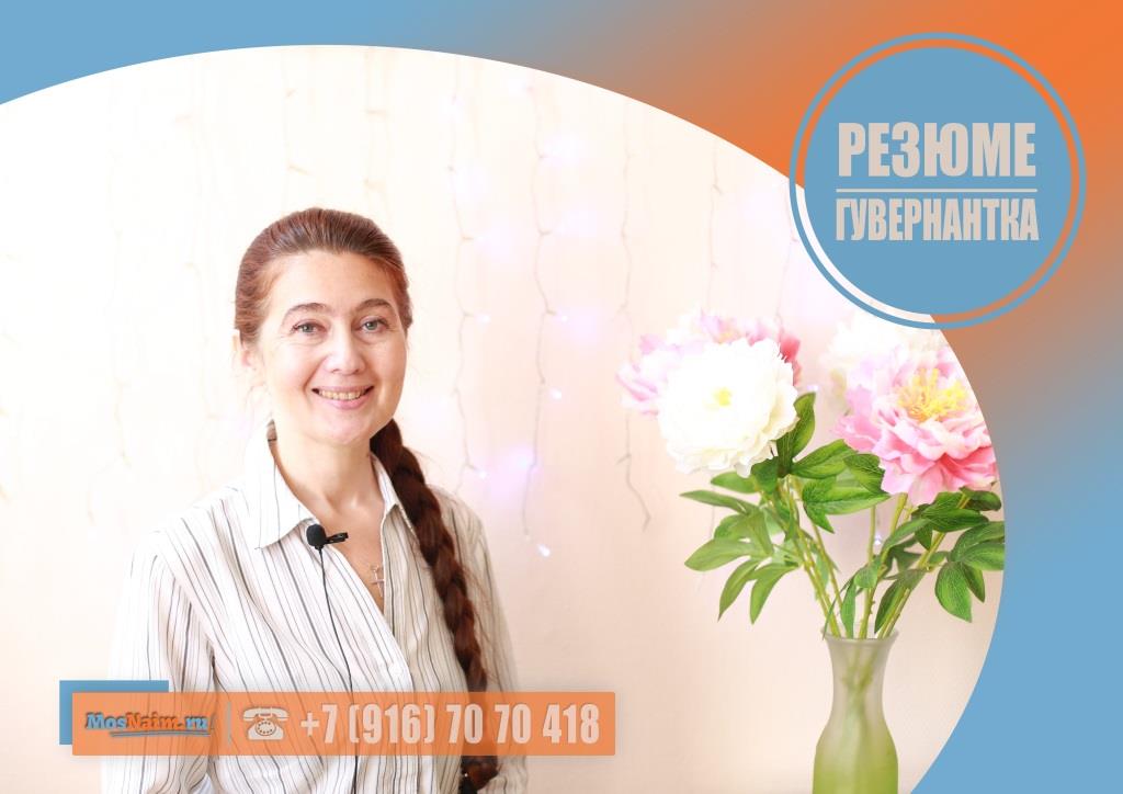 Навыки няни: Знание методик развития ребёнка: М. Монтессори, Н. Зайцев, Б. и Л. Никитины. Знание правил введения прикорма. Навыки самостоятельного приготовления прикорма (овощных/фруктовых/мясных пюре). Профессиональная подготовка ребёнка к школе. Профессиональная помощь в изучении предметов начальной школы. Профессиональная помощь в изучении предмета средней школы: химия. Профессиональная помощь в изучении английского языка. Проведение логопедических занятий.