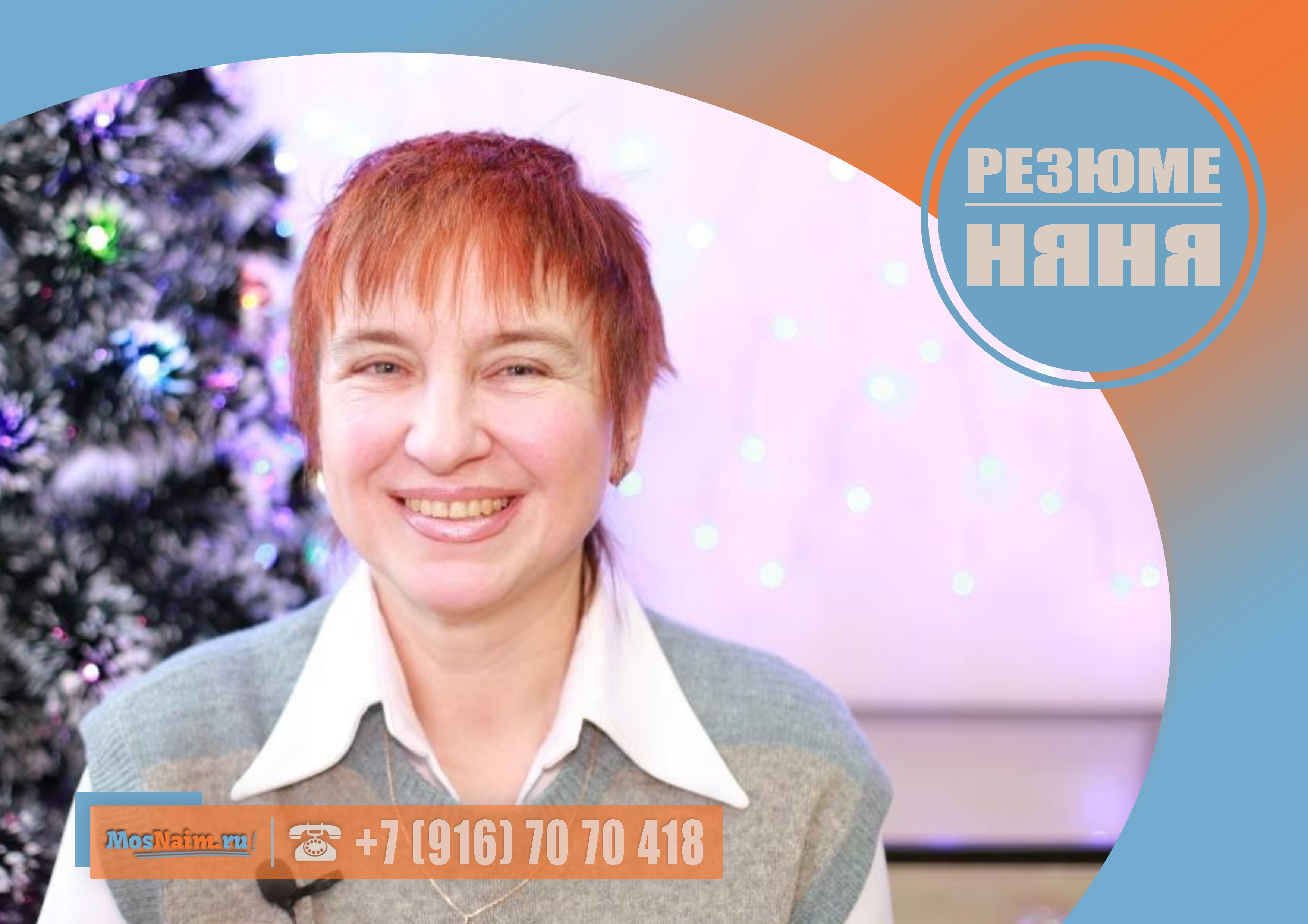О кандидате: 57 лет, без семейных проблем, мама двоих детей, знак зодиака — овен, национальность — русская, вероисповедание — православие, без вредных привычек, получила среднее специальное образование по специальности «Медицинская сестра», готова работать под камерами видеонаблюдения, согласна пройти проверку на полиграфе, непогашенных кредитов нет.