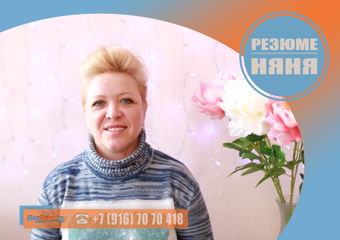Имеет опыт работы: няня у девочки (5 месяцев) — 1 год; няня у девочки (9 дней) – 4 года; няня у девочки (9 месяцев) – 1 год. Готова предоставить рекомендацию.