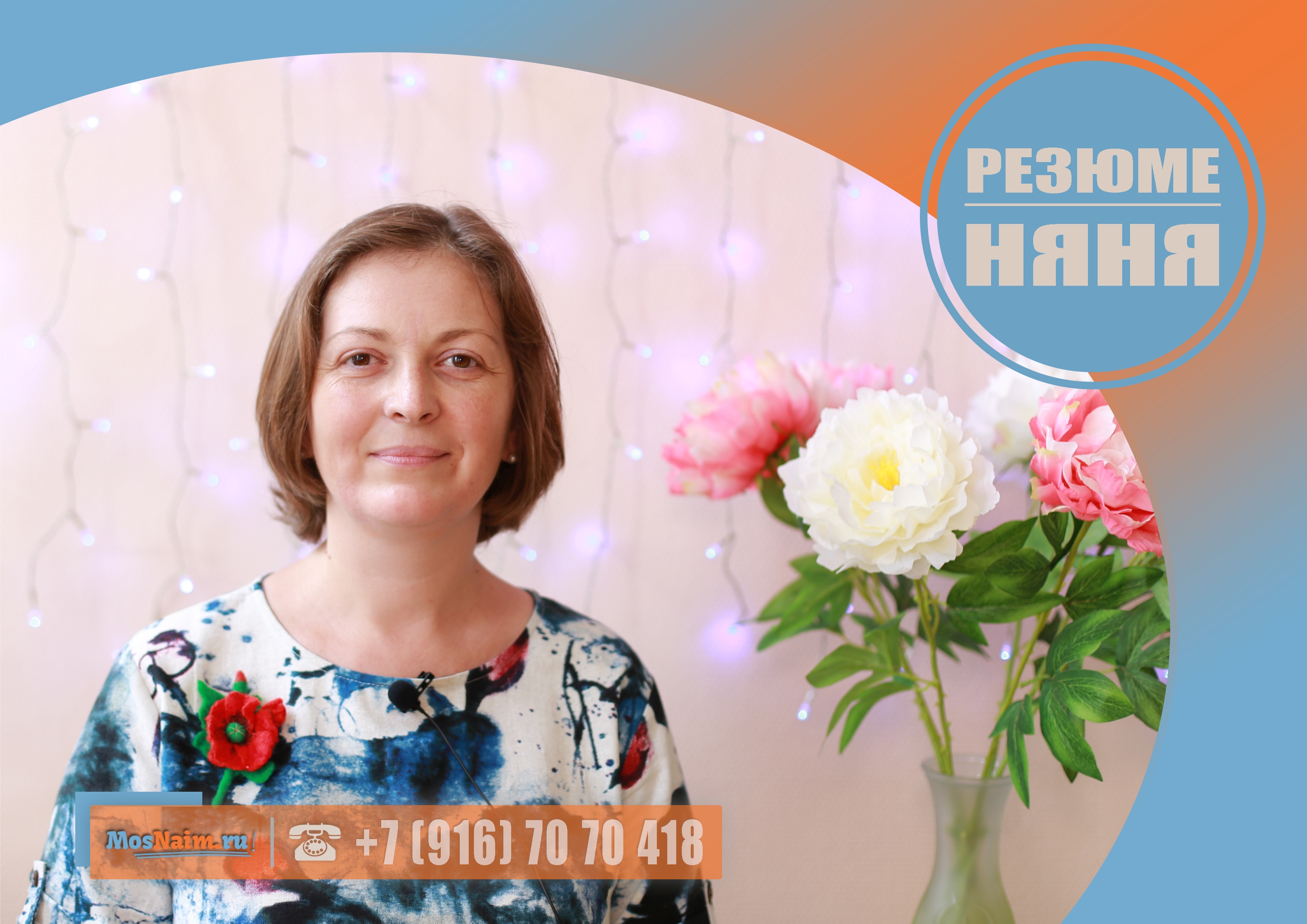 Имеет опыт работы: педагогический стаж (воспитатель) – 20 лет; няня (мальчики 8 и 11 лет, девочка 12 лет) – 1 год; няня (девочка 1 год и 5 месяцев) – 2 года. Готова предоставить рекомендацию.