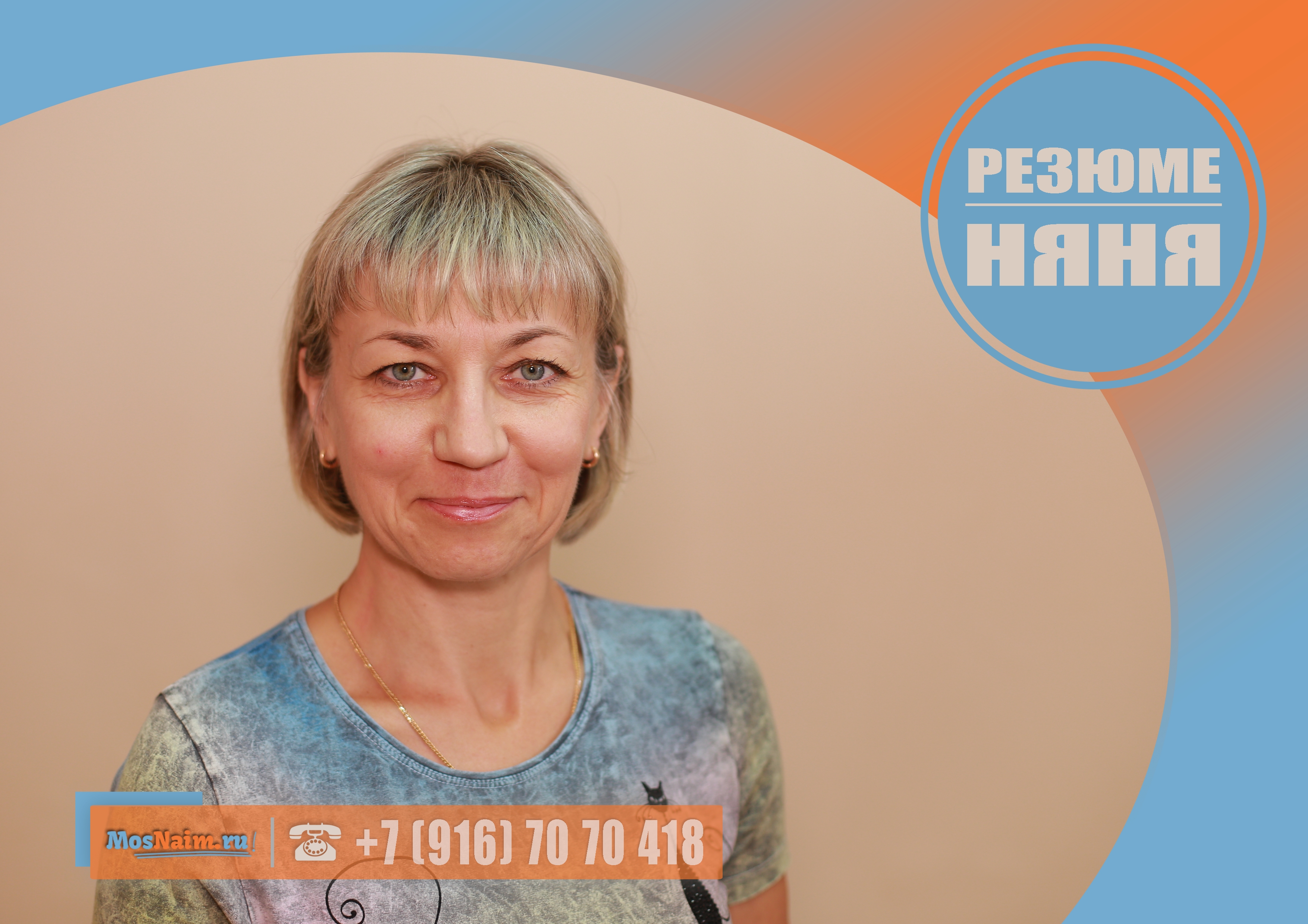 О кандидате: 49 лет, без семейных проблем, мама совершеннолетнего ребёнка, знак зодиака — овен, национальность — украинка, вероисповедание — православие, без вредных привычек, в наличии загранпаспорт (действителен до 15.03.2028 г.), получила среднее специальное образование по специальности «Учитель начальных классов», получила высшее образование по специальности «Начальное образование», в наличии медицинский анализ флюорографии (от 20.08.2018 г.), готова работать под камерами видеонаблюдения, согласна пройти проверку на полиграфе, просроченных кредитов нет.
