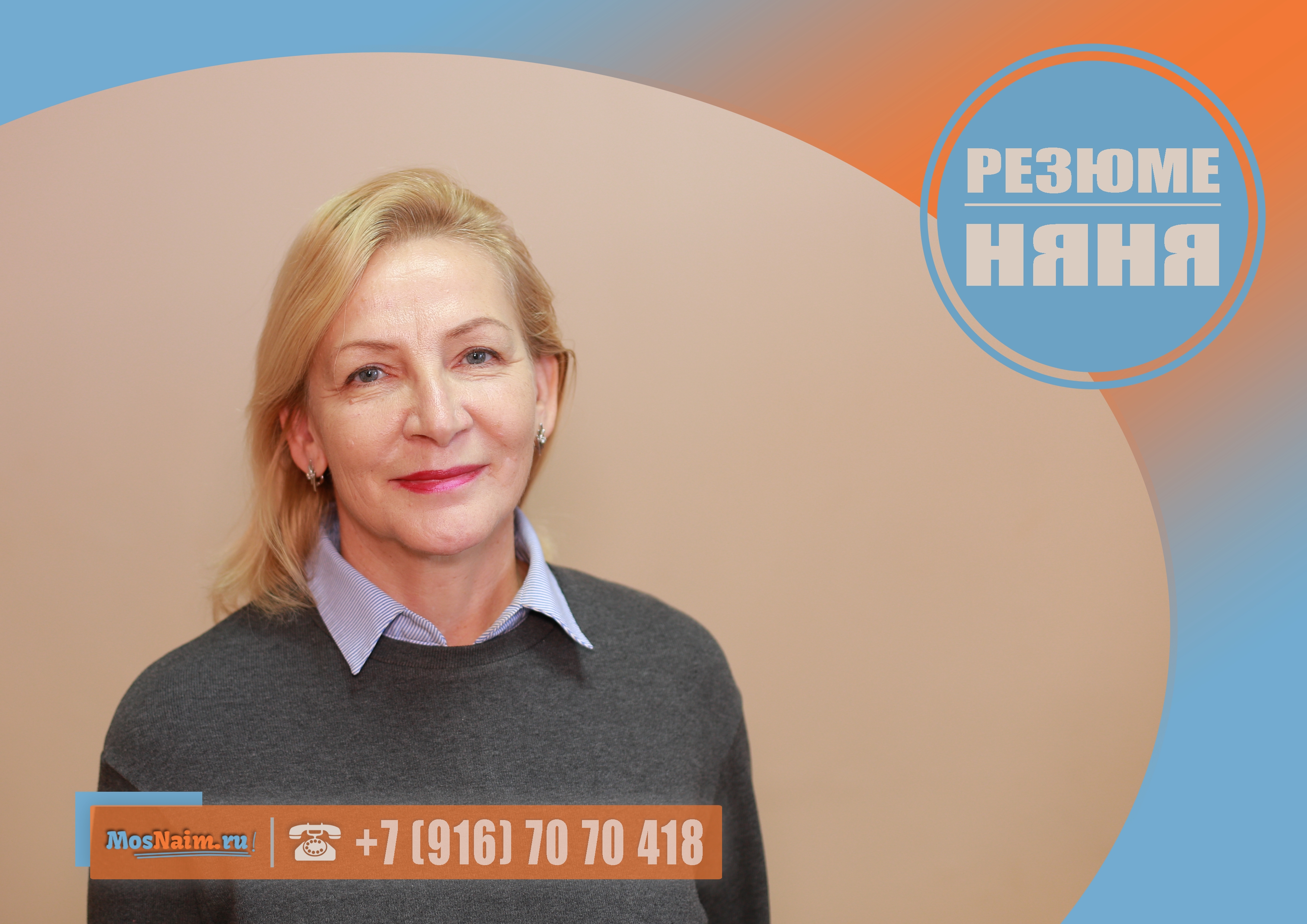 О кандидате: 57 лет, без семейных проблем, мама совершеннолетнего ребёнка, знак зодиака — рыбы, национальность — русская, вероисповедание — православие, без вредных привычек, в наличии загранпаспорт (действителен до 10.10.2024 г.), открыта виза в Америку (до 02.07.2020 г.), получила высшее образование по специальности «Инженер по автоматизации», готова работать под камерами видеонаблюдения, согласна пройти проверку на полиграфе, просроченных кредитов нет.