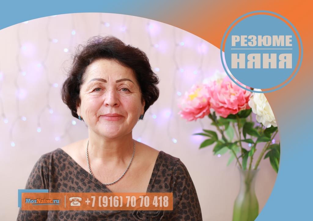 Имеет опыт работы: педагогический стаж (воспитатель ДОУ) – 28 лет; няня (девочка 1 год) – 1 год; няня у двоих детей (мальчики 2 года 6 месяцев и 4 года 6 месяцев) – 2 года; няня (мальчик 1 год) – 4 года. Готова предоставить рекомендации.