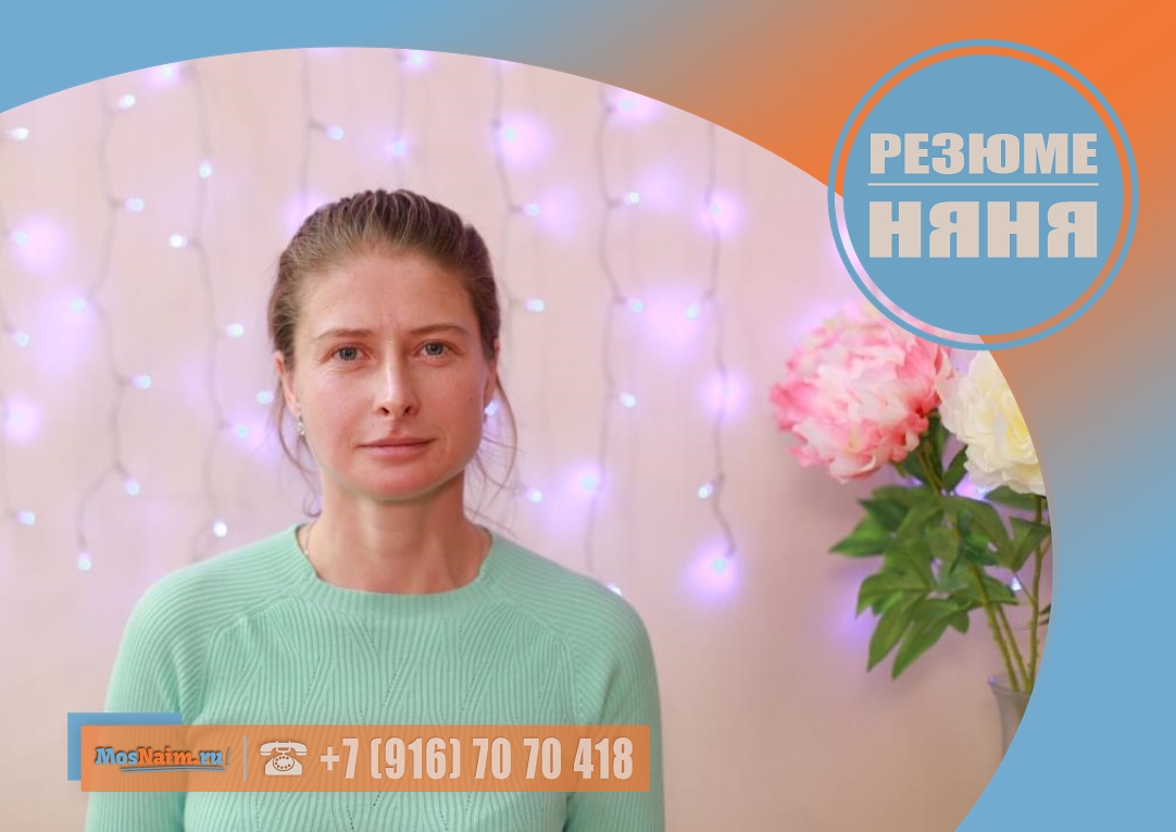 Имеет опыт работы: няня (мальчик 1 год 5 месяцев) — 1 год 3 месяца; няня (мальчик 1 год 2 месяца) – 1 год 1 месяц; няня у двоих детей (девочки 3 месяца и 3 года 6 месяцев) – 2 года.