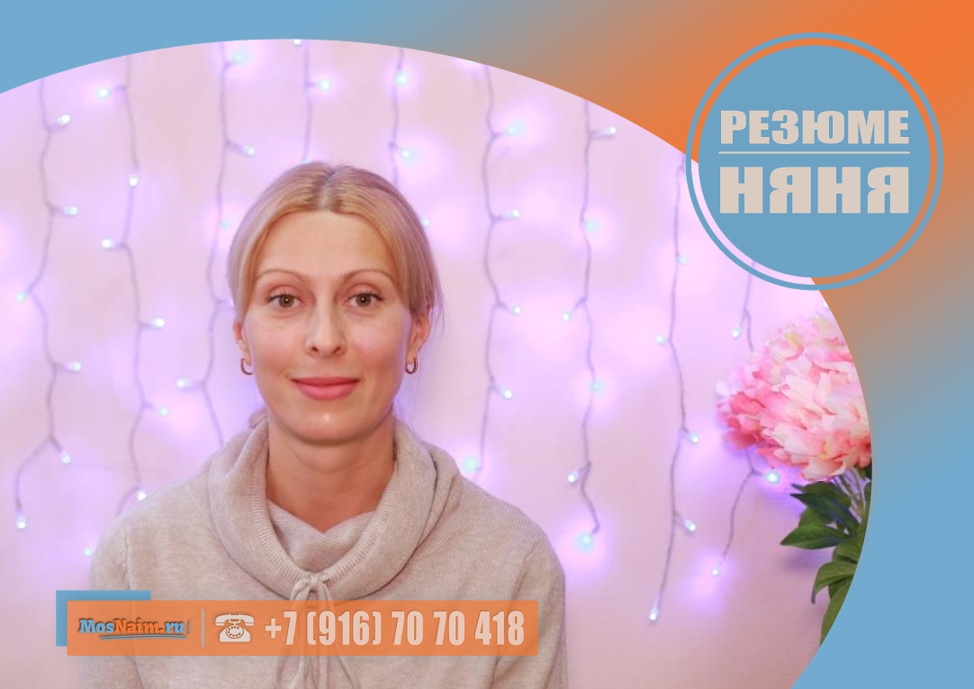 Имеет опыт работы: няня (девочка 3 года) – 2 года; няня у двоих детей (девочка 5 лет и мальчик 7 лет) – 6 месяцев. Готова предоставить рекомендации.