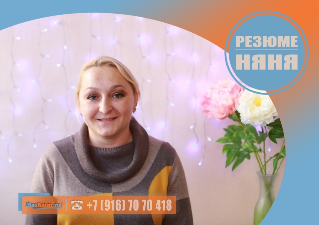 Имеет опыт работы: няня (мальчик 7 месяцев) – 3 года 2 месяца.