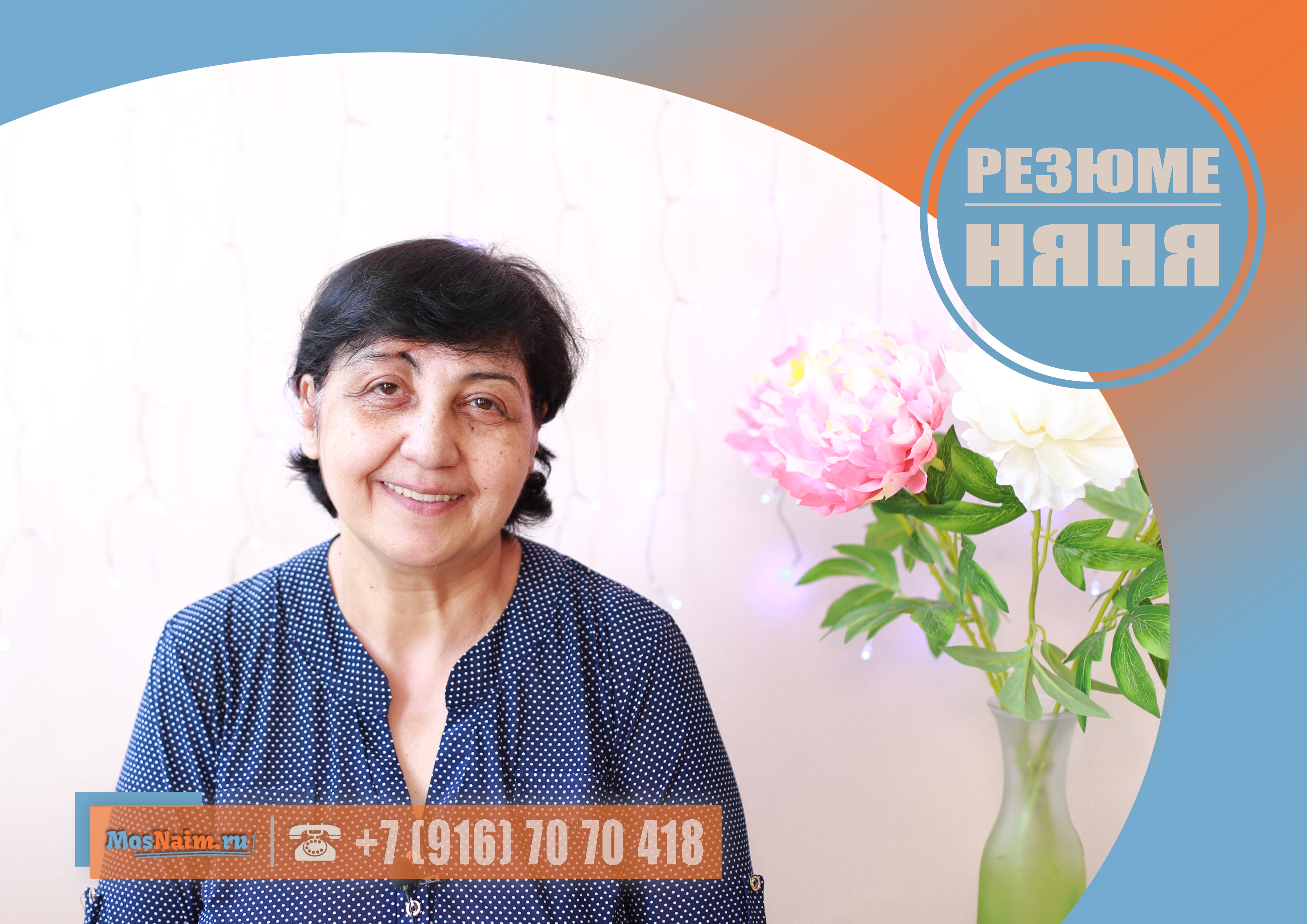 О кандидате: 56 лет, замужем, мама двоих совершеннолетних детей, знак зодиака — рак, национальность — армянка, вероисповедание — православие, без вредных привычек, получила среднее специальное педагогическое образование по специальности «Учитель начальных классов» (со слов соискателя), прошла курсы повышения квалификации по программе «Основы религиозных культур и светской этики» (со слов соискателя), в наличии медицинская книжка (анализы от 12.04.2019 г.), готова работать под камерами видеонаблюдения, согласна пройти проверку на полиграфе, просроченных кредитов нет.