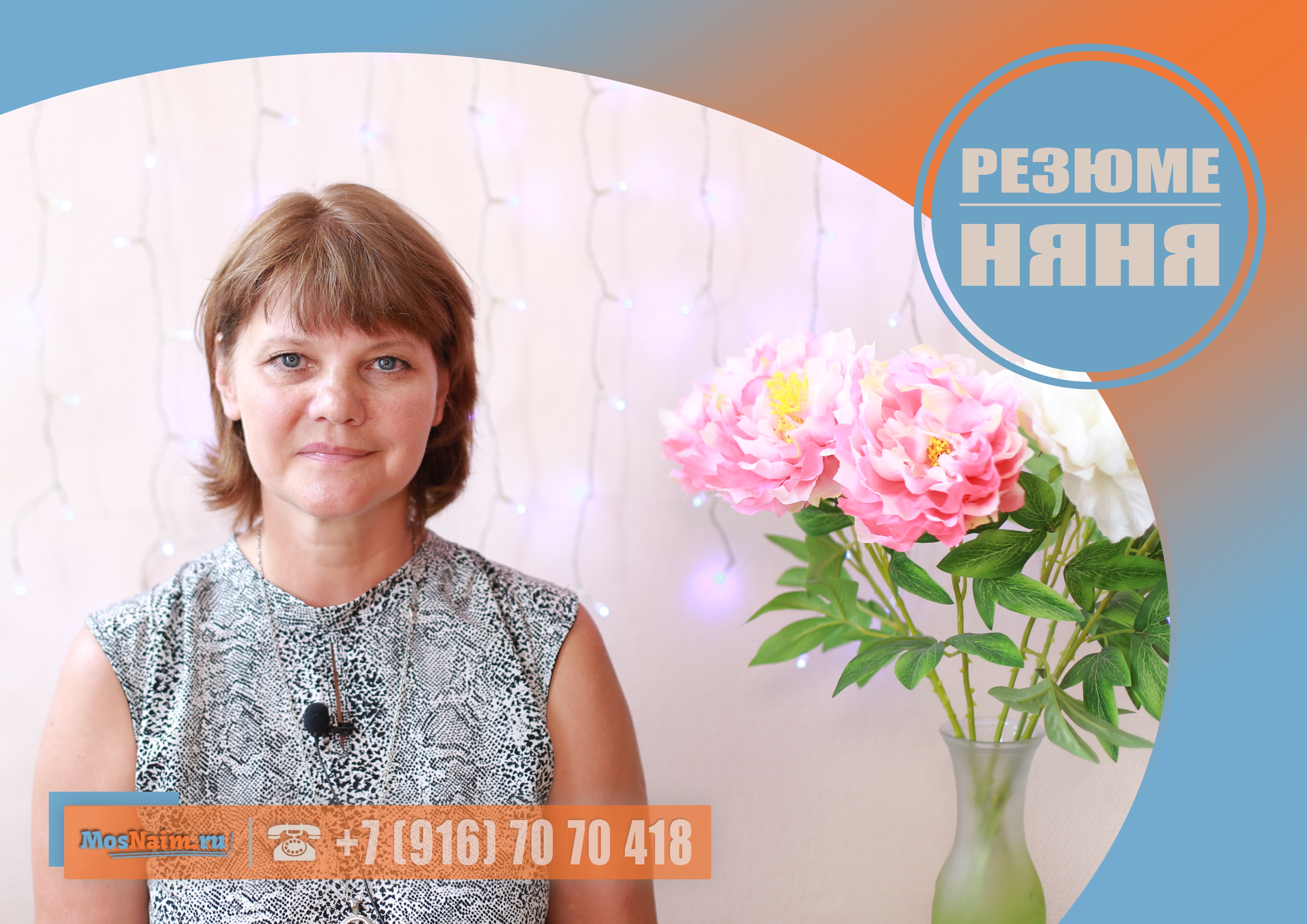 Имеет опыт работы: педагогический стаж (воспитатель в детском саду ) – 13 лет; няня-гувернантка у одного ребёнка (мальчик 5 лет) – 2 года; няня-воспитатель у троих детей (два мальчика и девочка от 0+) – 18 лет. Готова предоставить рекомендацию.