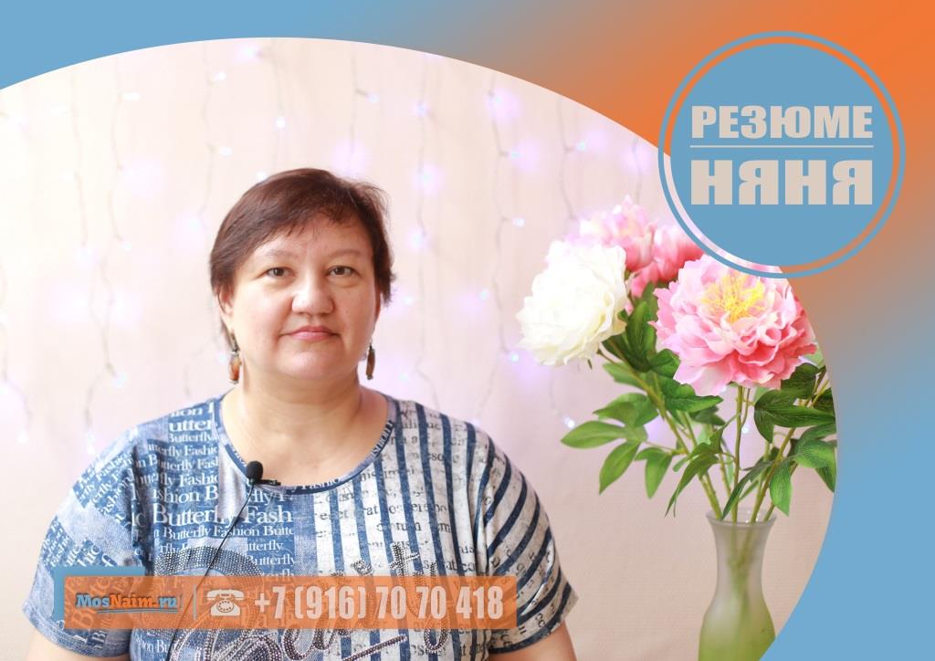Имеет опыт работы: медицинский стаж (медицинская сестра широкого профиля, дом ребёнка) – 21 год; сиделка (женщина 86 лет уход по возрасту, квартира 62 кв. м.) – 1 год; няня выходного дня у четверых детей (3 девочки 0+, 0+, 7 лет и мальчик 0+) – 14 лет; домработница — сиделка (квартира 60 кв. м., мужчина 85 лет, диагноз деменция) – с июня 2019 года по настоящее время. Готова предоставить рекомендации.