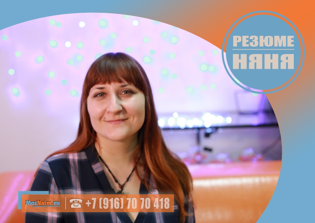 Имеет опыт работы: педагогический стаж (воспитатель в детском саду) – 3 года; няня (0+) – 2 года 1 месяц; няня (мальчик 4 года) – 2 года 4 месяца; няня (мальчик 1 год) – 7 месяцев; няня (мальчик 3 года) – 1 год. Готова предоставить рекомендации.
