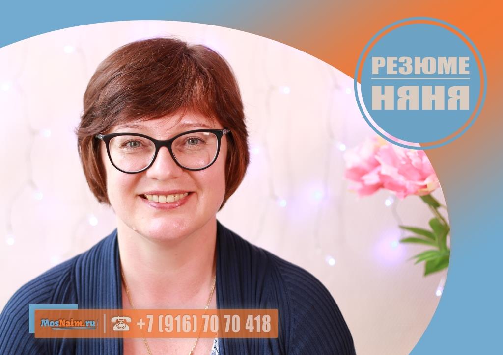 Имеет опыт работы: медицинский стаж (медсестра хирургическая) – 4,5 года; няня к грудничку (девочка 0+) – 2 года 6 месяцев; няня к грудничку (мальчик 1,5 года) – 2 года 1 месяц; няня к грудничку (девочка 2,5 месяца) – 3 года. Готова предоставить рекомендации.