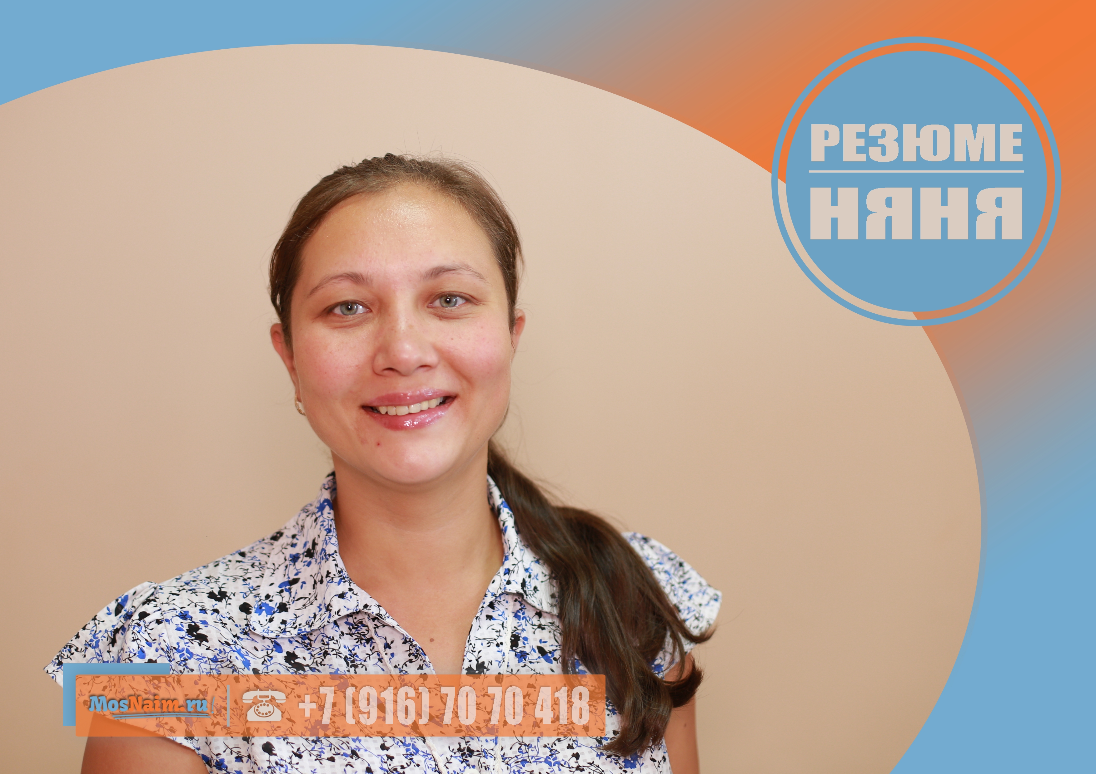 Имеет опыт работы: педагогический стаж (педагог-психолог) – 11 лет; няня (мальчик 5 месяцев) – 2 года; няня (мальчик 1 год 2 месяца) – 3 месяца. Готова предоставить рекомендации.