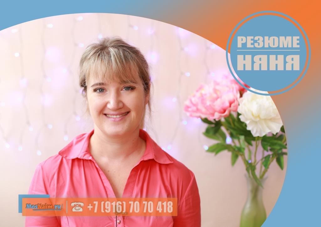 Имеет опыт работы: няня у двойни (мальчики по 1 месяцу) – 1 год; няня у троих детей (мальчики 1 год 6 месяцев, 5 лет и 10 лет) – 1 год; няня у троих детей (мальчик 5 лет, девочки 9 и 11 лет). Готова предоставить рекомендации.