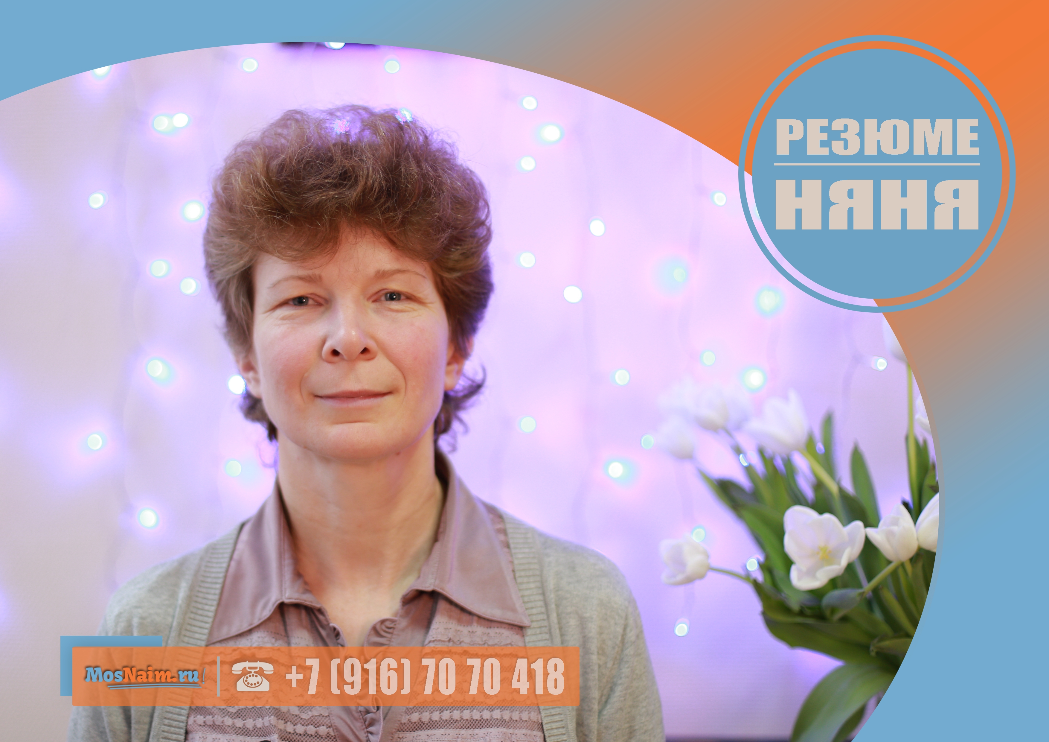 Имеет опыт работы: воспитатель в детском саду – 21 год 5 месяцев; няня-воспитатель (девочка 1,2 года) – 3 года; няня-воспитатель (девочка 1,6 лет) – 2 года 5 месяцев; няня (девочка 1,5 года) — 10 месяцев. Готова предоставить рекомендации.