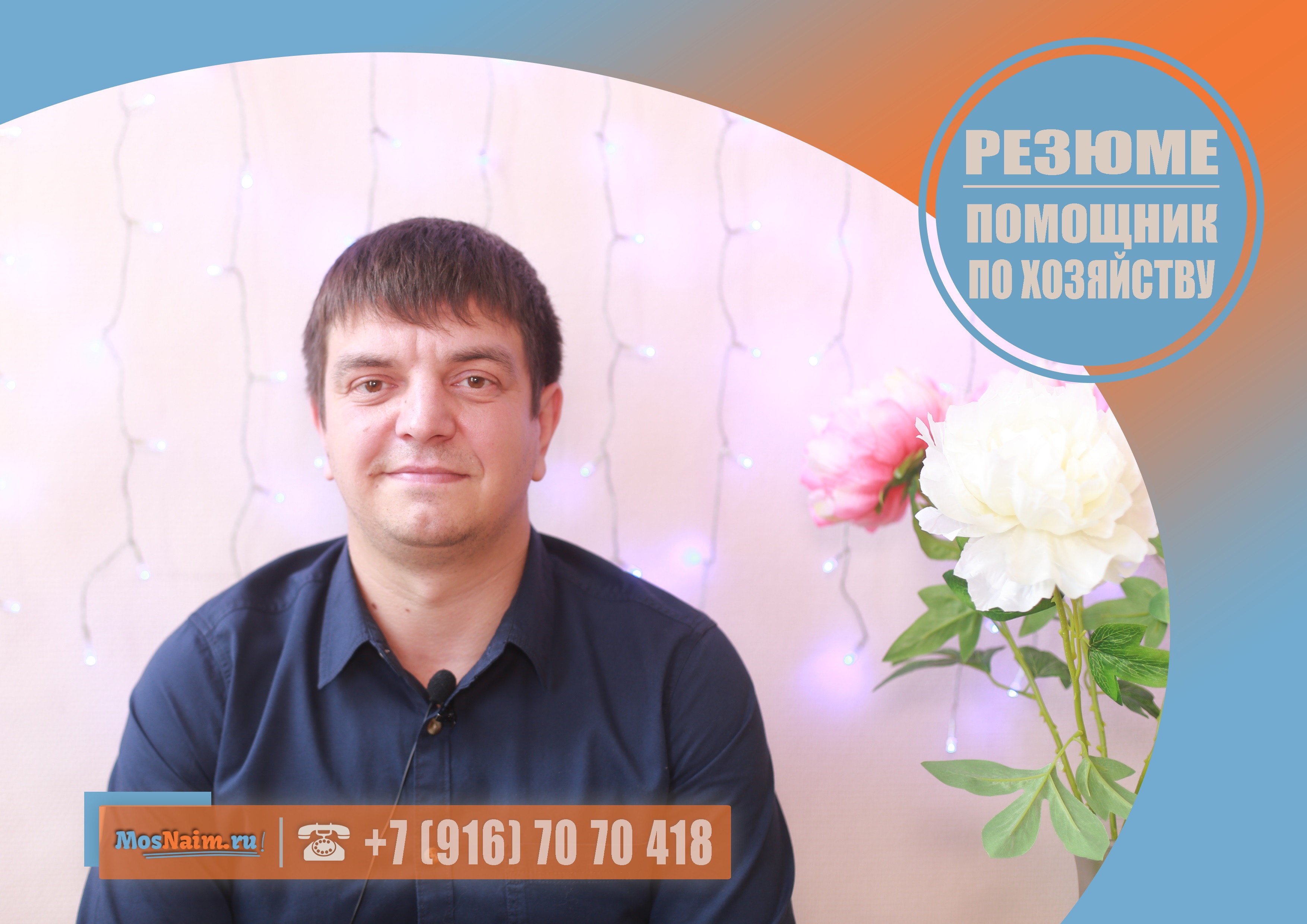 Навыки помощника по хозяйству: Наличие опыта работы на автомобилях марки: Toyota Highlander, Toyota Rav4, Land Cruiser Prado. Наличие опыта вождения по Москве. Знание дорог Москвы и Московской области. Умение пользоваться садовой техникой (газонокосилка, триммер, садовый пылесос, культиватор, садовый трактор, минимойка, снегоуборочная машина). Умение сажать газон и ухаживать за ним. Умение ухаживать за бассейном, а именно: чистка, фильтрация. Уход за домашней птицей и кроликами. Умение следить за всеми системами жизнеобеспечения дома (отопительной, водоочистной, охранной, канализационной, вентиляционной, системами горячего и холодного водоснабжения, системой электроснабжения дома, системой кондиционирования воздуха, системой газоснабжения). Выполнение столярных, сварочных, плотницких и строительных работ.