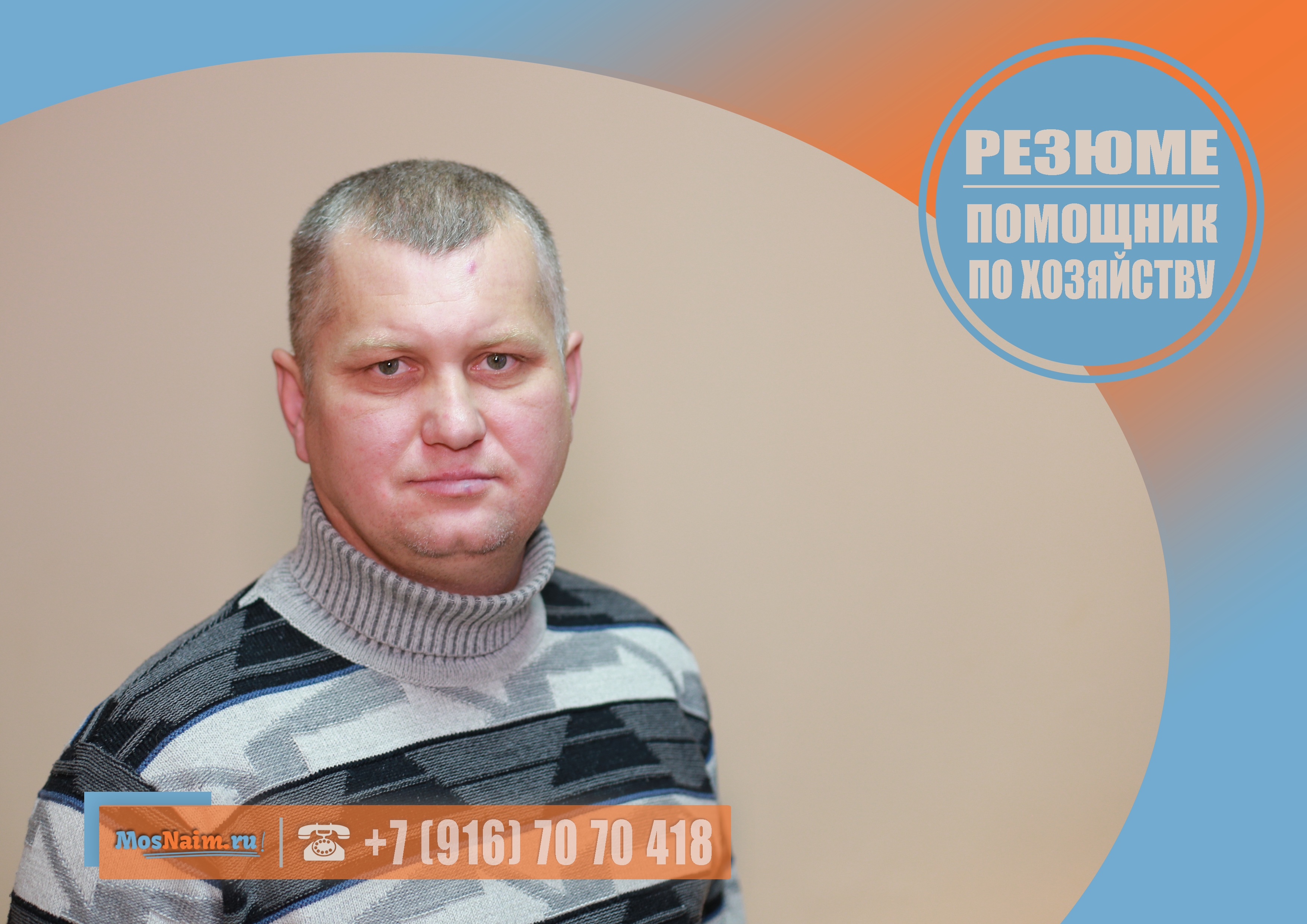 Профессиональные навыки помощника по хозяйству: Наличие опыта работы на автомобилях марки: Mazda Xedos 6, Mercedes ML, Renault Logan, BMW X5. Наличие опыта вождения по Москве. Знание дорог Москвы и Московской области. Умение пользоваться садовой техникой (газонокосилка, триммер, садовый пылесос, культиватор, садовый трактор, минимойка, снегоуборочная машина). Умение сажать газон и ухаживать за ним. Умение ухаживать за хвойным растением в саду, а именно: туя, Уход за искусственным прудом, разведение в нём рыб. Уход за домашней птицей и кроликами. Уход за лошадьми. Умение следить за всеми системами жизнеобеспечения дома (отопительной, водоочистной, охранной, канализационной, вентиляционной, системами горячего и холодного водоснабжения, системой электроснабжения дома, системой кондиционирования воздуха, системой газоснабжения). Выполнение столярных, сварочных, плотницких и строительных работ.