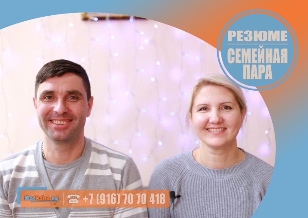Опыт работы в составе семейной пары: помощники по хозяйству (дом 300 кв. м., участок 20 соток) – 2 года.