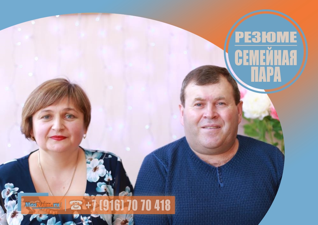 Опыт работы в составе семейной пары: помощники по хозяйству (дом 500 кв. м., участок 40 соток) – 5 лет. Готовы предоставить рекомендации.
