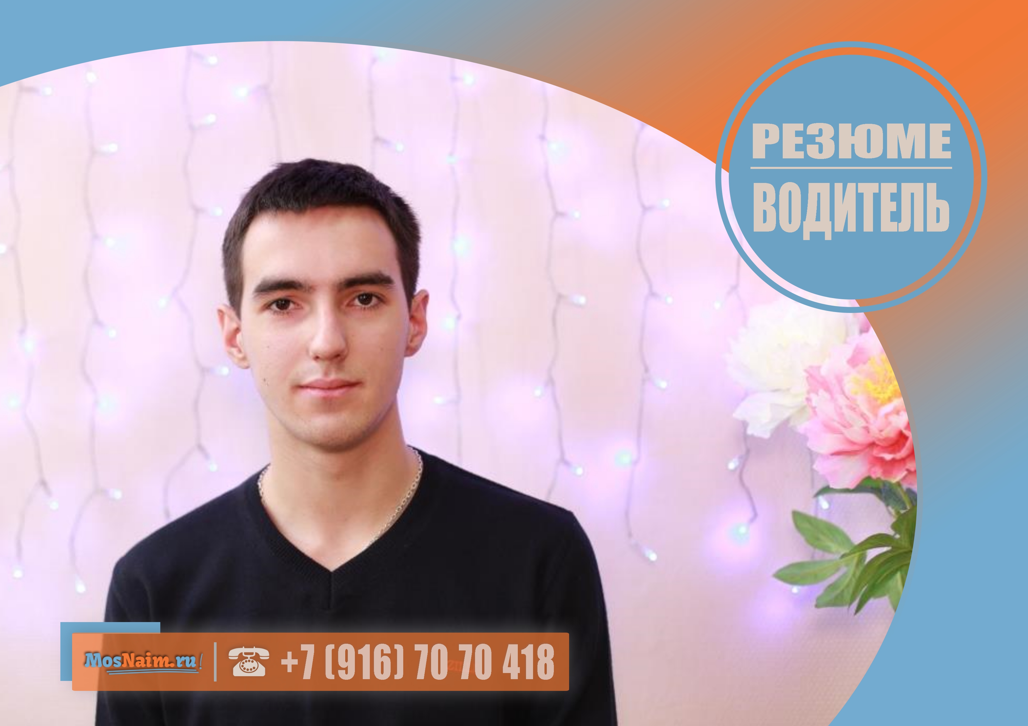 О кандидате: 20 лет, без семейных проблем, знак зодиака — водолей, национальность — украинец, вероисповедание — православие, без вредных привычек, получил среднее специальное образование по специальности «Сестринское дело», в наличии загранпаспорт (действителен до 26.05.2027 г.), в наличии водительское удостоверение категорий «B, C», стаж вождения с 2016 г., готов работать под камерами видеонаблюдения, просроченных кредитов нет.