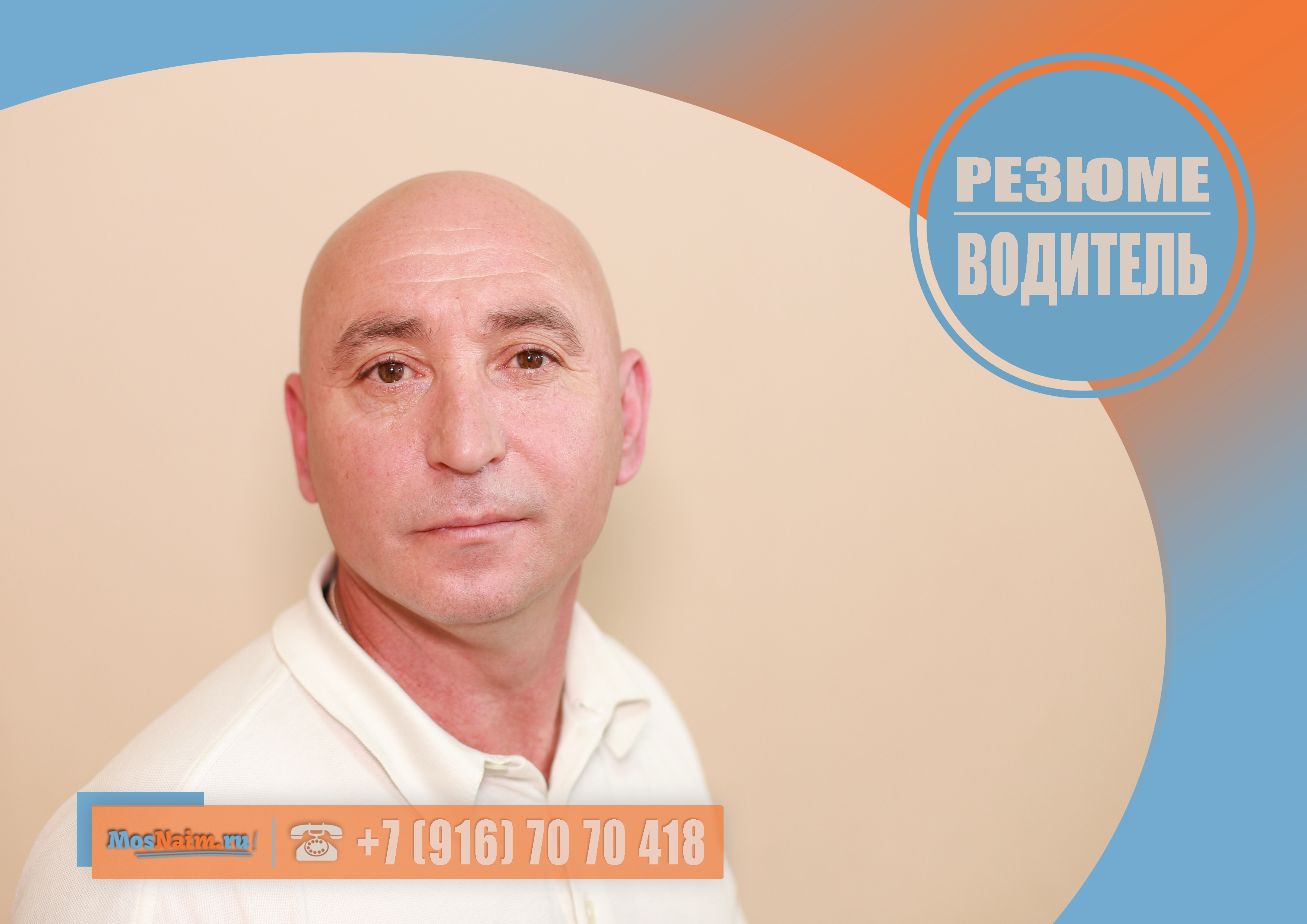 О кандидате: 49 лет, без семейных проблем, отец троих детей, знак зодиака — близнецы, национальность — русский, вероисповедание — христианство, без вредных привычек, получил среднее техническое образование по специальности «Слесарь-монтажник» (со слов соискателя), в наличии загранпаспорт (действителен до 16.09.2021 г.), в наличии водительское удостоверение категорий «A, B, C», стаж вождения с 1988 г., владеет собственным автомобилем марки Nissan Teana — 2012 года выпуска, готов использовать его в работе, готов работать под камерами видеонаблюдения, согласен пройти проверку на полиграфе, просроченных кредитов нет.